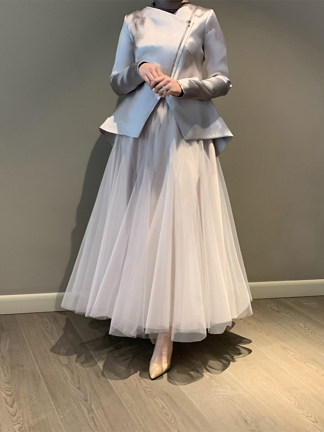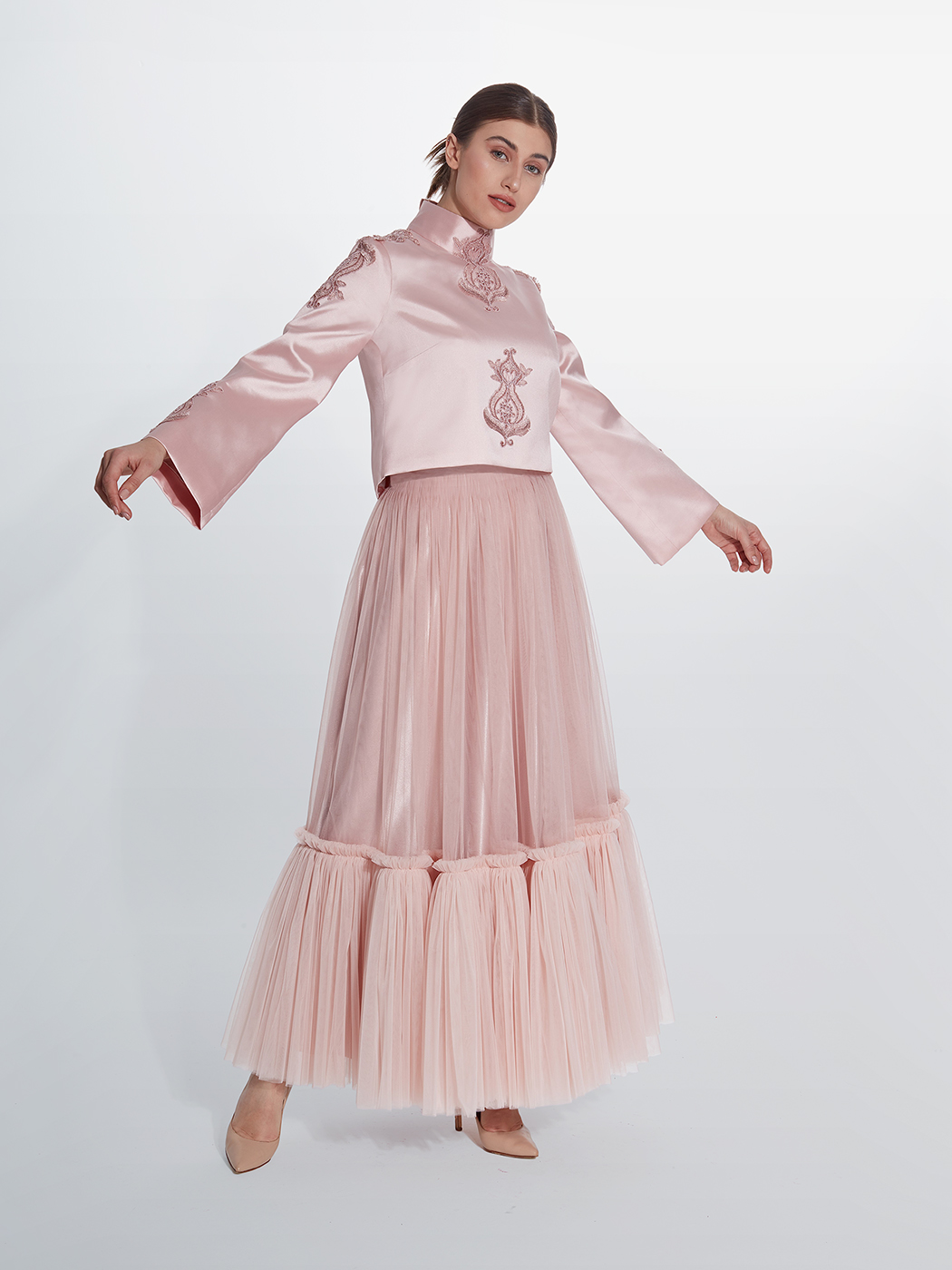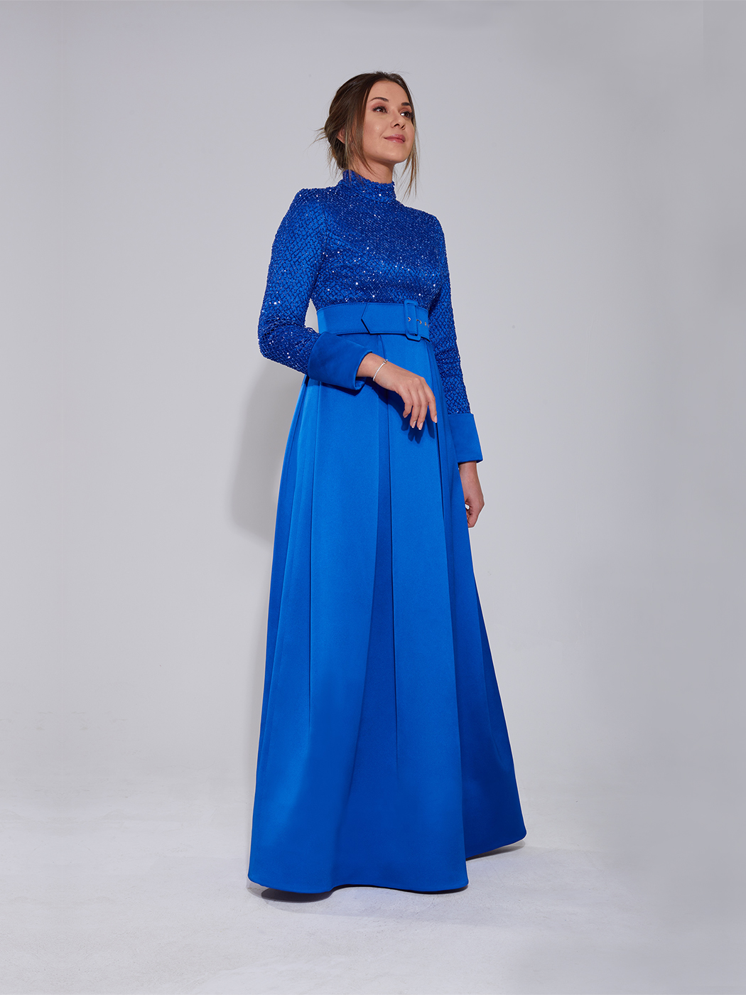 Organze gömlek ve uzun payet balık etek.